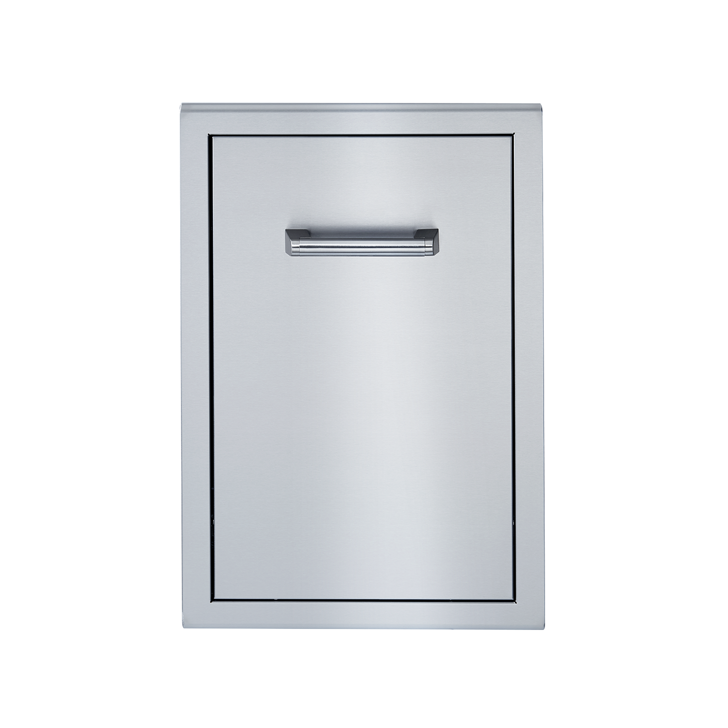 Keep waste out of sight with the 18-inch roll-out waste drawer. The waste drawer, built with high quality 304 stainless steel, installs into any outdoor kitchen and allows you to conveniently dispose of waste while grilling. The soft close drawer prevents hard closures, keeping contents in place and extending the life of the drawer.